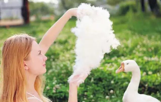 优质羽绒具有较高的蓬松度,这是其他任何保暖材料所不能比拟的。保暖材料越蓬松,材料纤维间的空隙就越大,所包含的不流动的空气就越多。而空气是热的不良导体,可以起到阻止热量向四周传导的作用。因此蓬松度越高,保暖性能越好。如果不考虑织物纤维间导热性的差异(实际上差异很小),那么羽绒制品与同样厚度的普通织物相比,其导热性低20-50%,也就是保暖性高1-4倍。制品填充料的密度越高,热传导性就大,失去的热量也越多。高绒子含量的羽绒,具有较高的蓬松度,从而使其制品在同样的厚度下密度较小,因此保暖性较高。因此,使用绒子含量较高的羽绒,可适当减少填充料的重量,既能得到同样的保暖性,又能降低制品的重量。这就是羽绒制品具有“轻、软、暖”特点的原因。