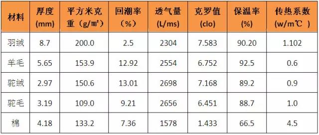 可见,在天然保暖材料中,保暖性最好的当数羽绒,其次是驼绒,再往后依次是羊毛、驼毛和棉花。